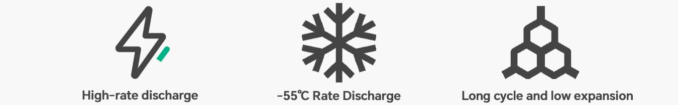 Altpotenca Rapida Ŝargada Teknologio: Nia sendepende evoluigita molpaketa litiuma baterio subtenas 5C-rapidan ŝarĝadon, atingante 85 % ŝarĝan efikecon en 10 minutoj. Ĝi konservas kontinuan 5C-malŝarĝan rendimenton ĉe malaltaj temperaturoj de –55 °C kaj liveras 30C-malŝarĝan kurenton ĉe ĉambra temperaturo, kun iuj produktoj atingantaj 180C-malŝarĝan kurenton.